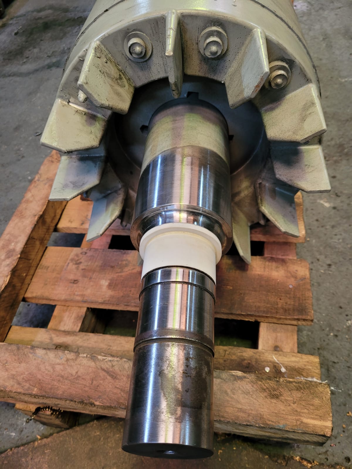 Metalizado en ajustes de los rodamientos en rotor generador.